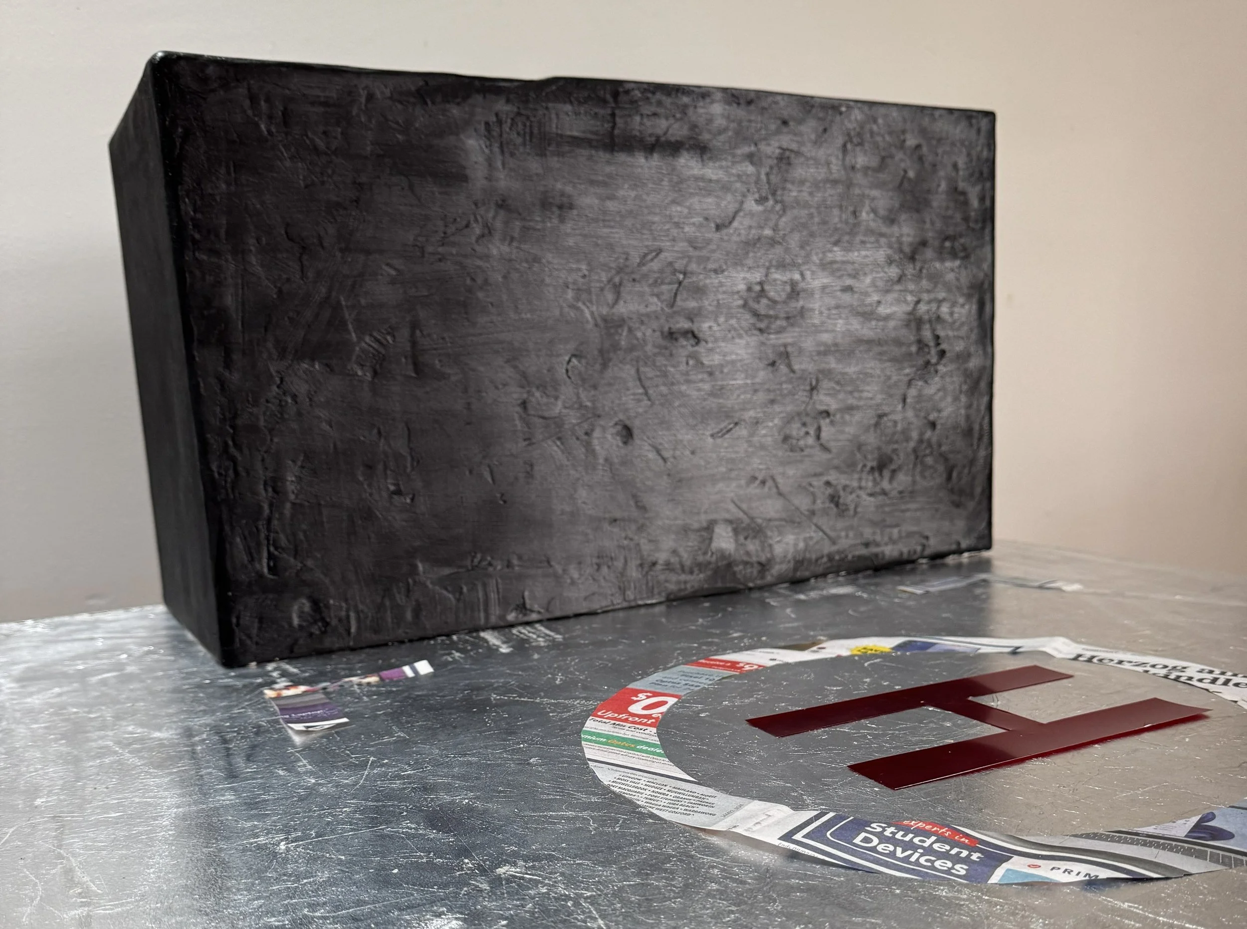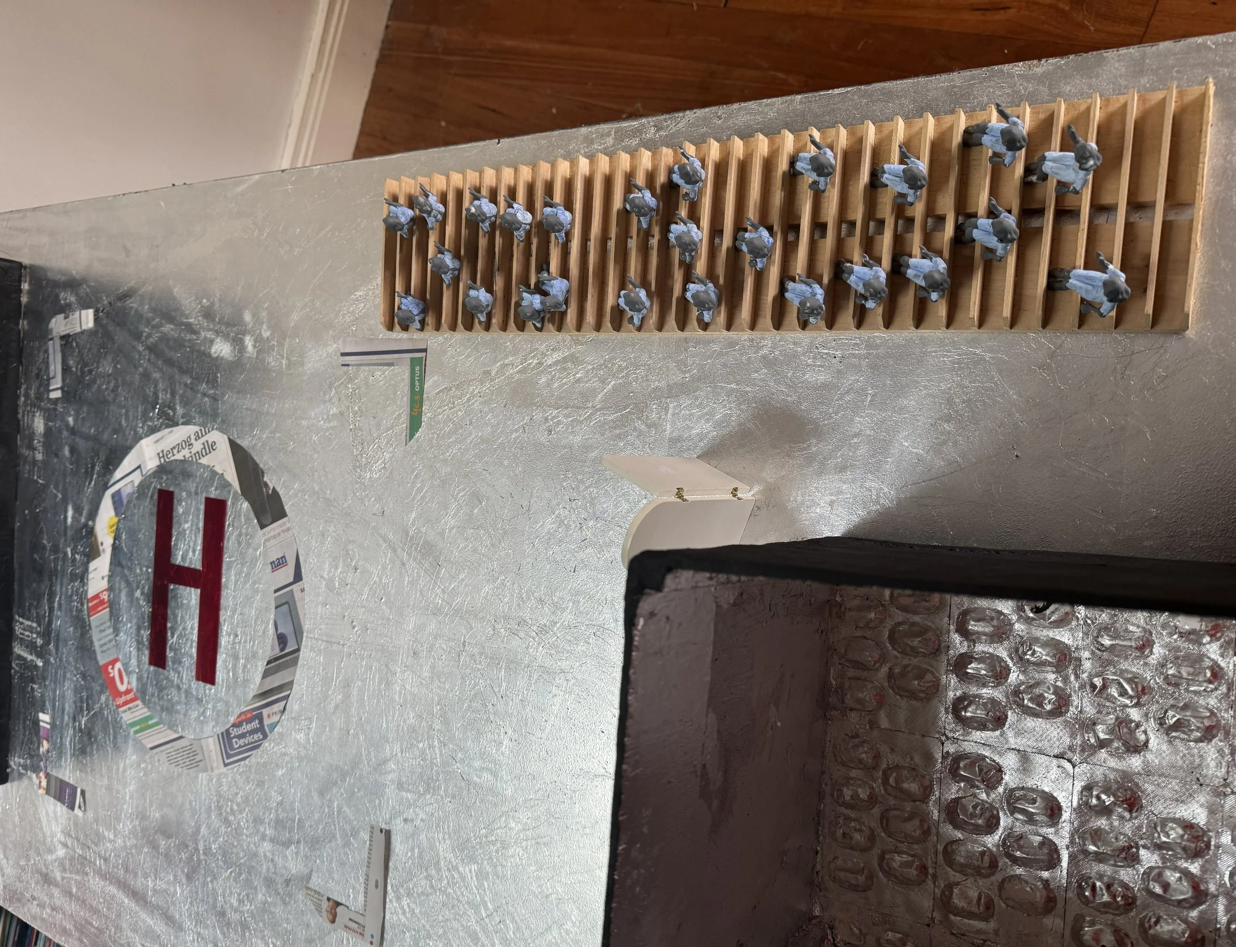 (not)Surviving the Night, 2026, 184 x 70 x 75 (h) cm, found objects, gilded surfaces, paper, wood, found objects, dioramas,